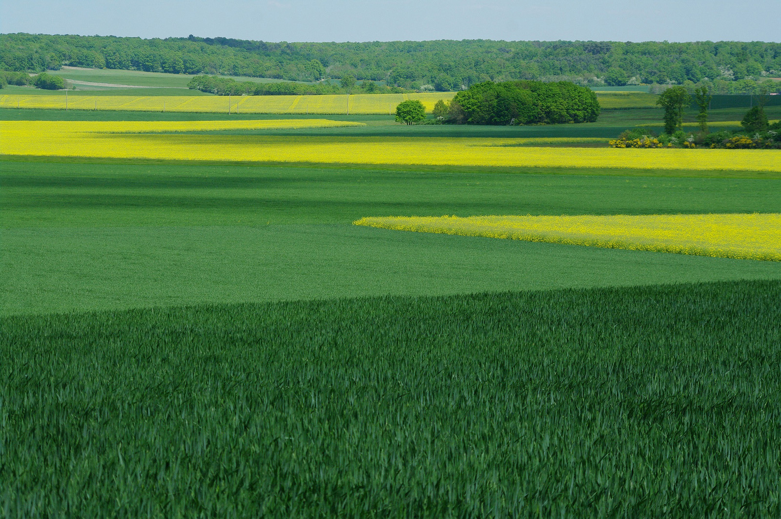 Aux environs d'Epernon (Eure et Loir), ce patchwork en jaune et vert m'avait fait descendre de ma voiture.